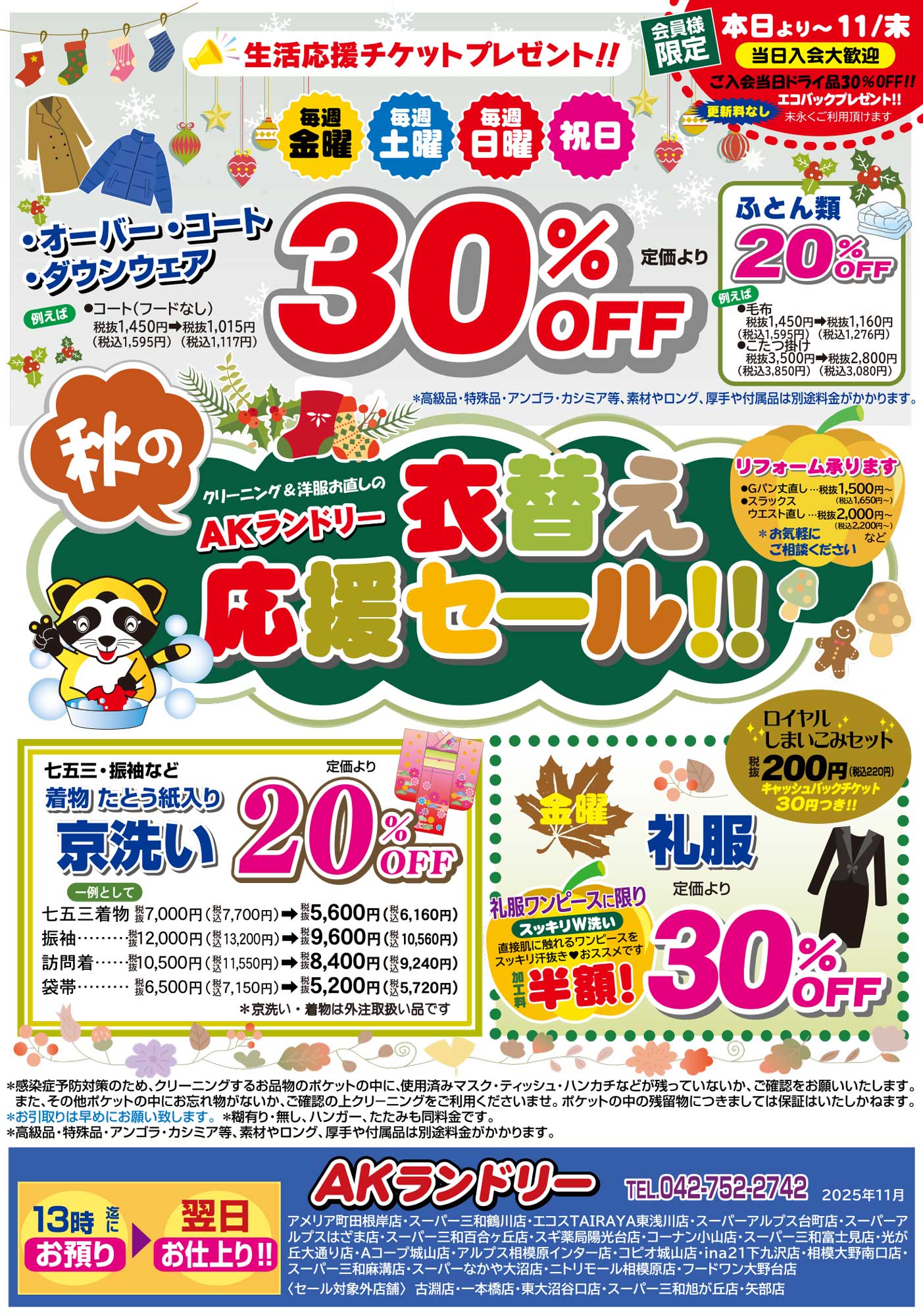 ※高級品・特殊品・アンゴラ・カシミア・プリーツ・絹・麻、大型及び厚手等は別途料金を頂きます。